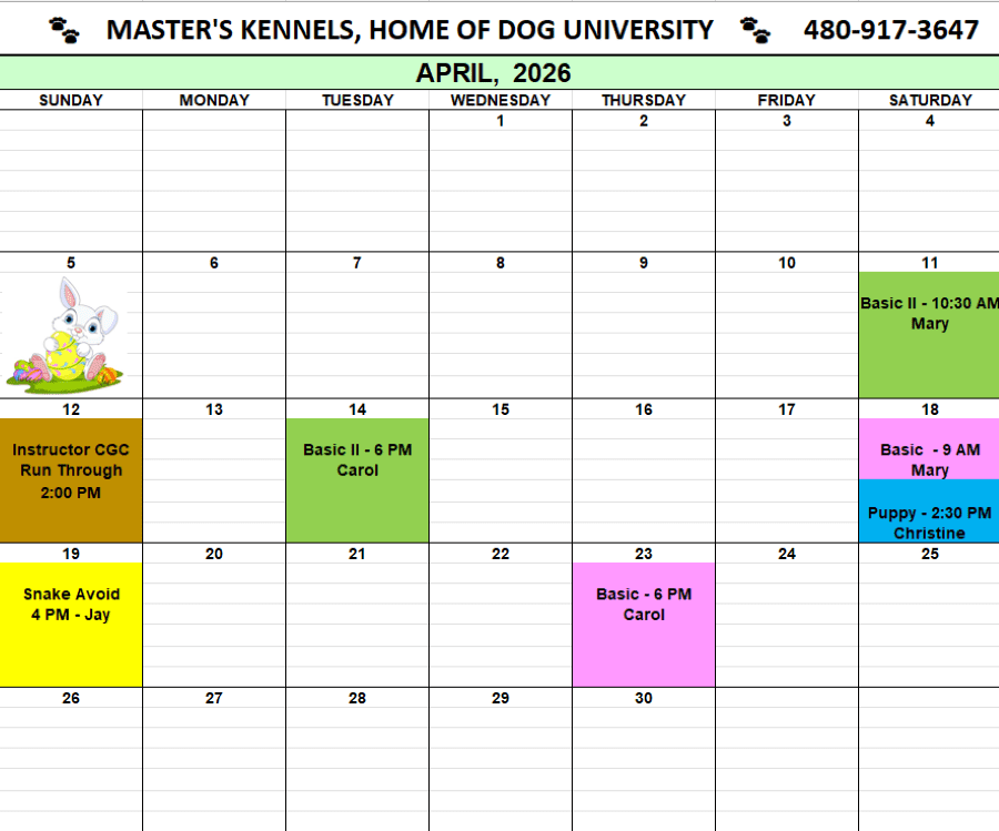 All trainers at Master’s Kennels are currently AKC Canine Good Citizen certified evaluators.